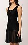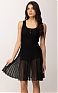 Облегающее платье из трикотажа. Модель без рукавов с глубоким вырезом горловины и шортиками-кюлотами в тон. Сочетание резинки с ажурной вязкой и плиссированным эффектом на юбке создаёт роскошный фактурный контраст и динамичный силуэт, нового сезона Элизабетта Франчи весна-лето 2026.