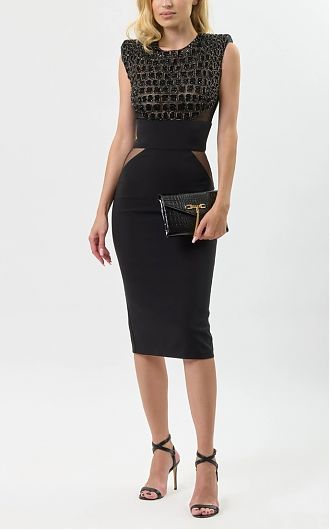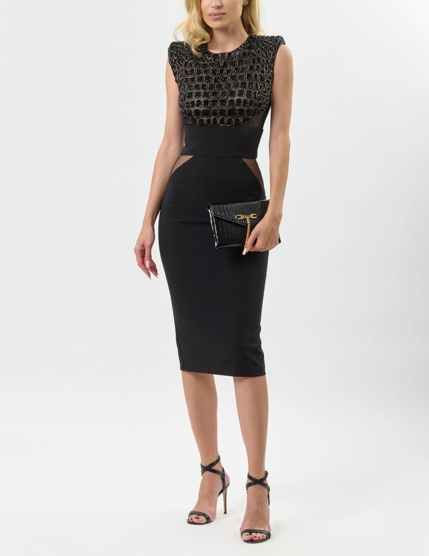 Платье коктельное с прозрачными вставками нового сезона Элизабетта Франчи осень-зима 2025/26.