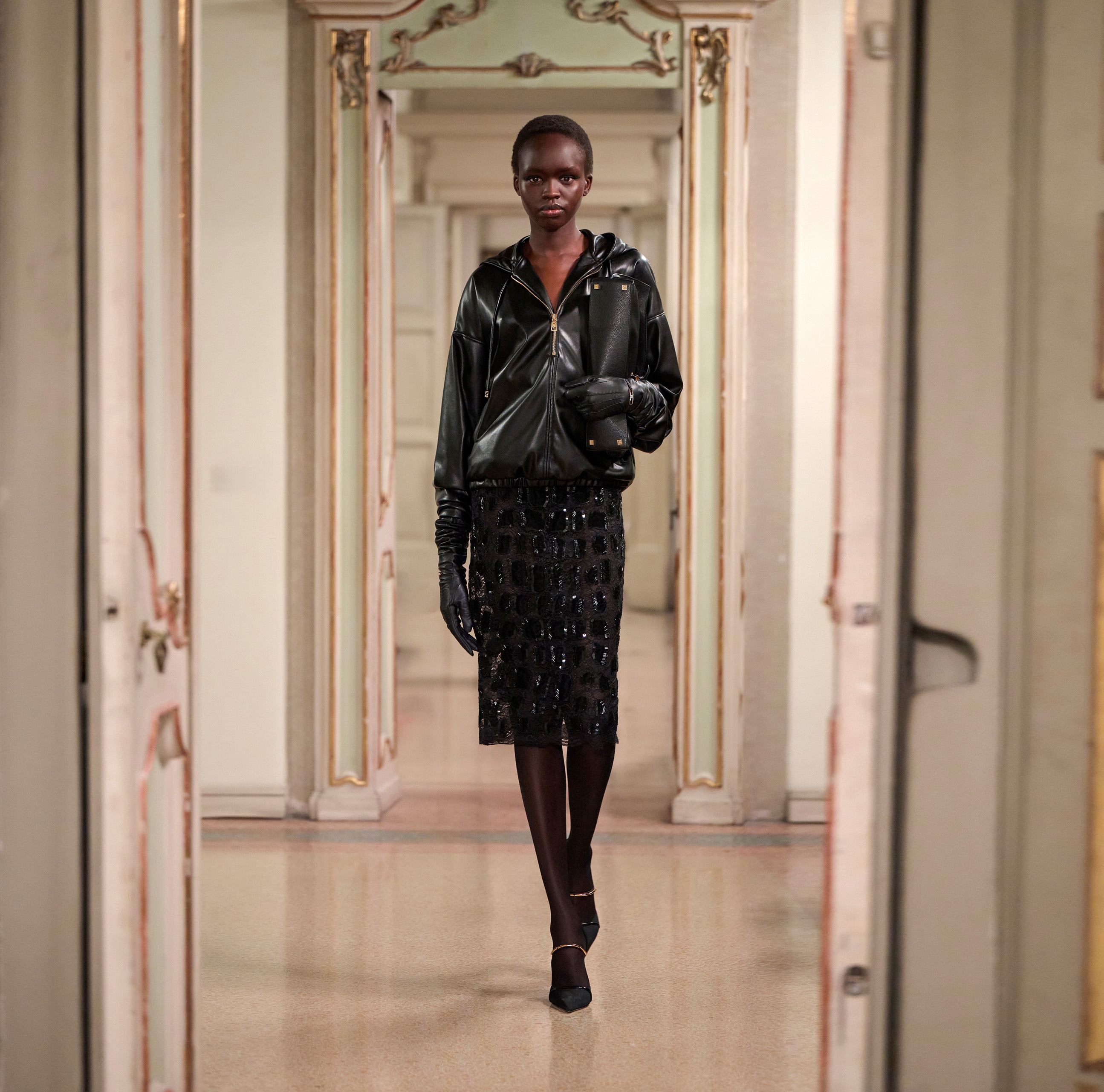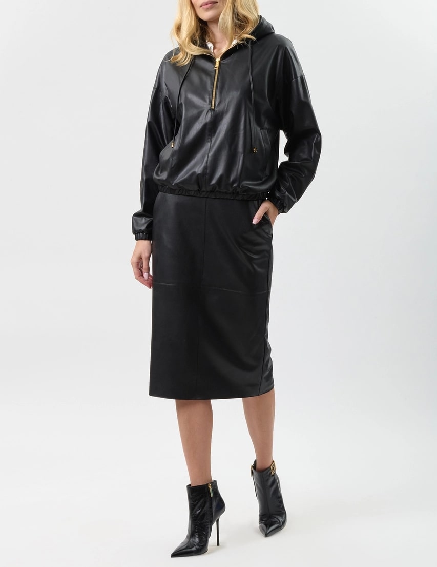 Бомбер из эко-кожи с капюшоном нового сезона Элизабетта Франчи осень-зима 2025/26.