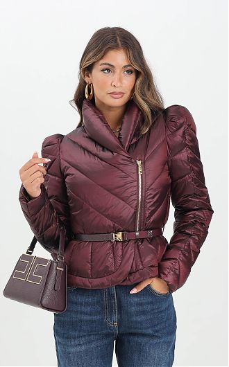 Пуховик хит с плечиками и ремнём в комплекте нового сезона Элизабетта Франчи осень-зима 2025/26