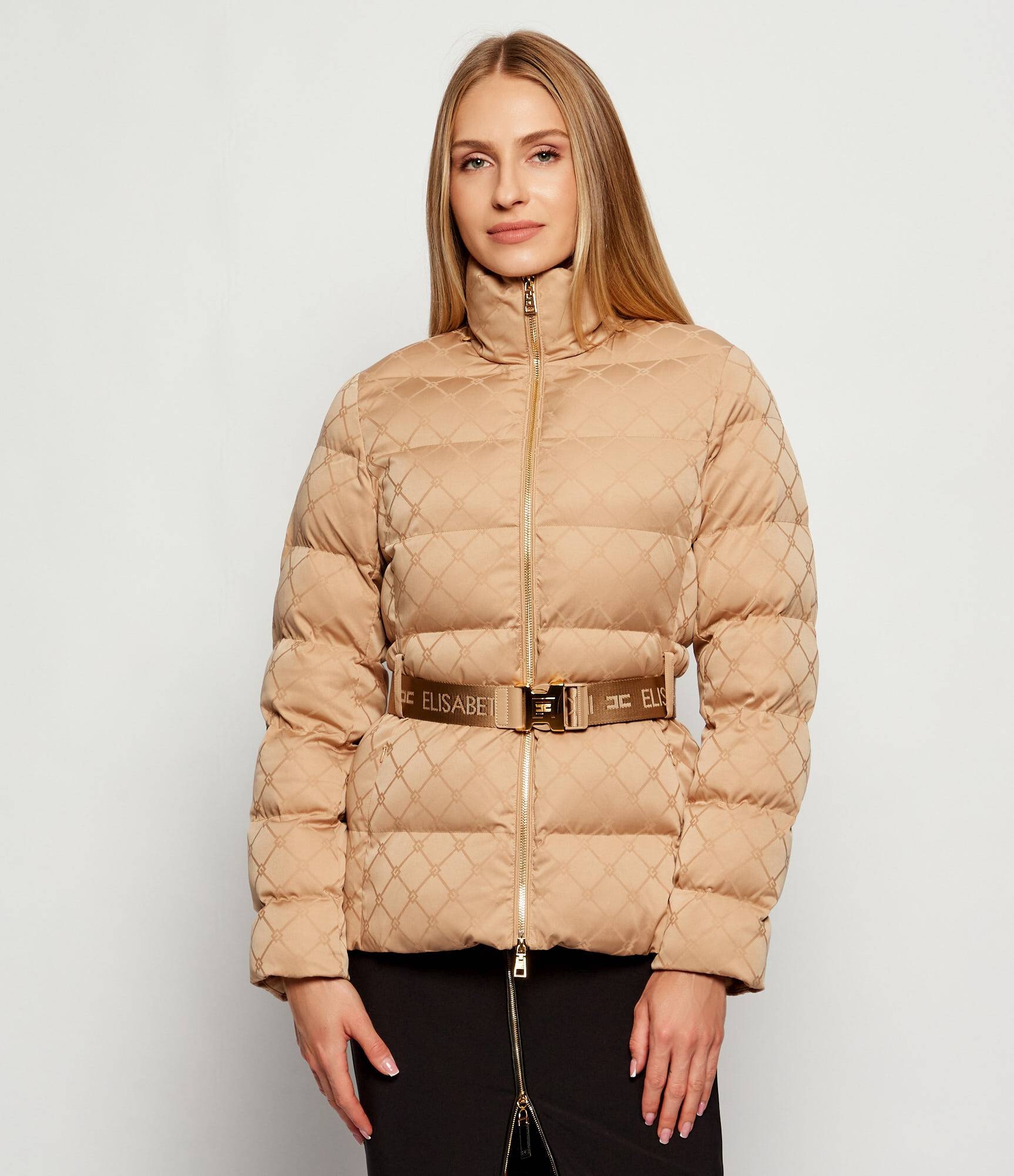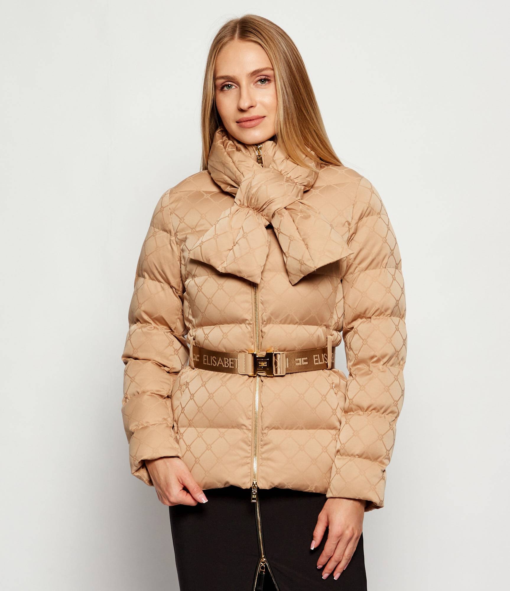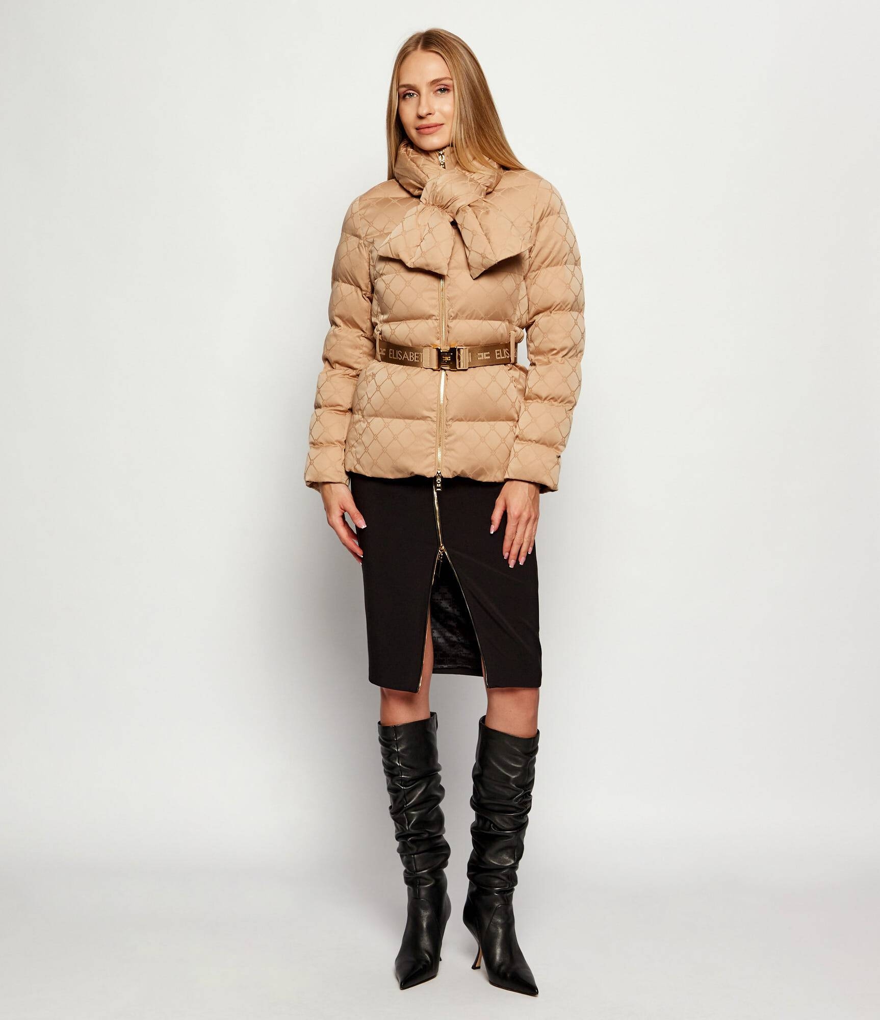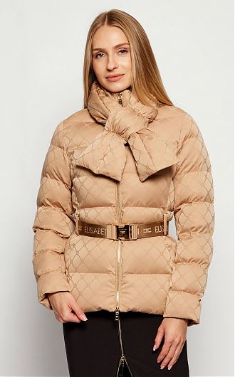 Пуховик короткий со съёмным шарфом и поясом в комплекте нового сезона Элизабетта Франчи осень-зима 2025/26