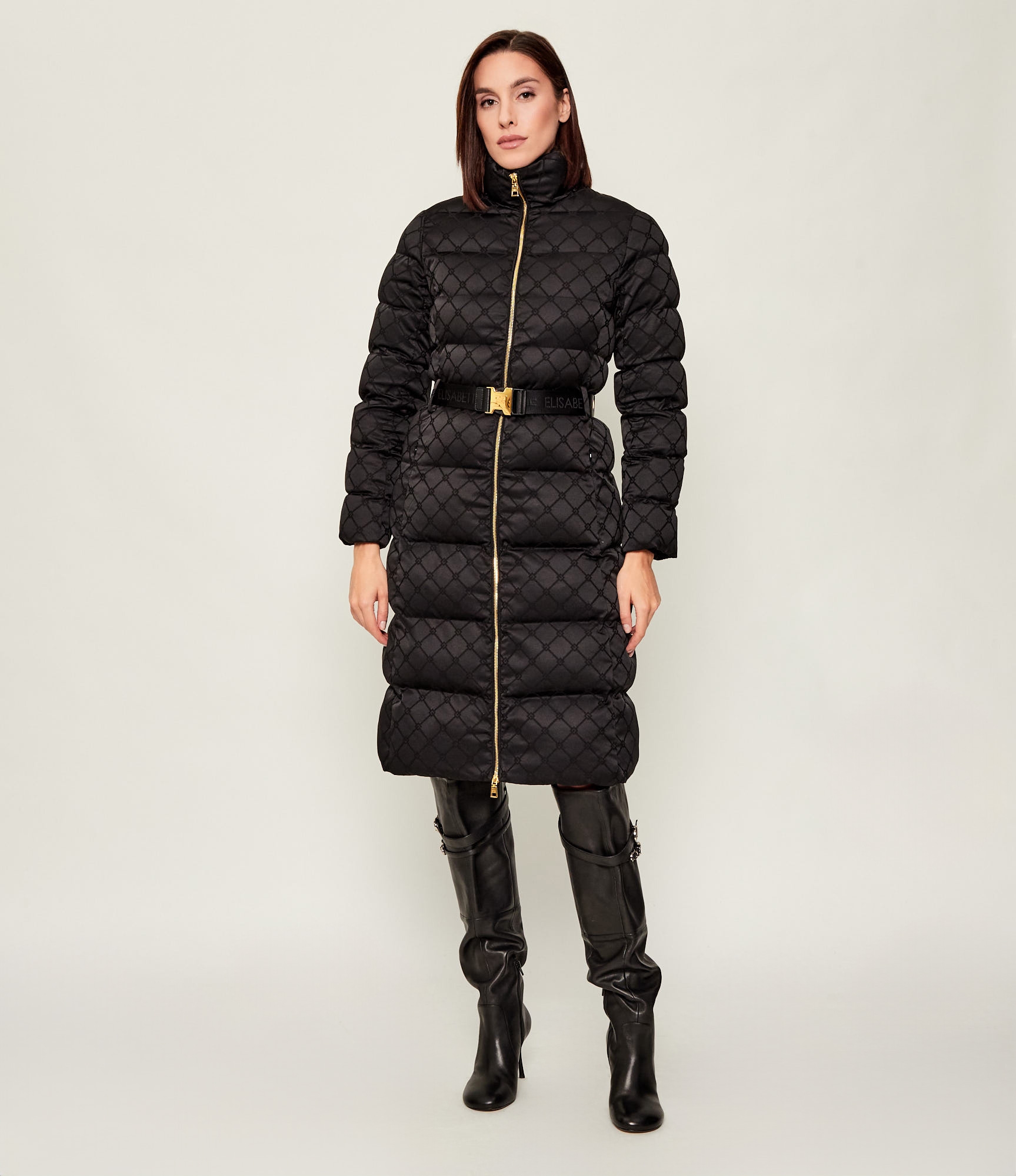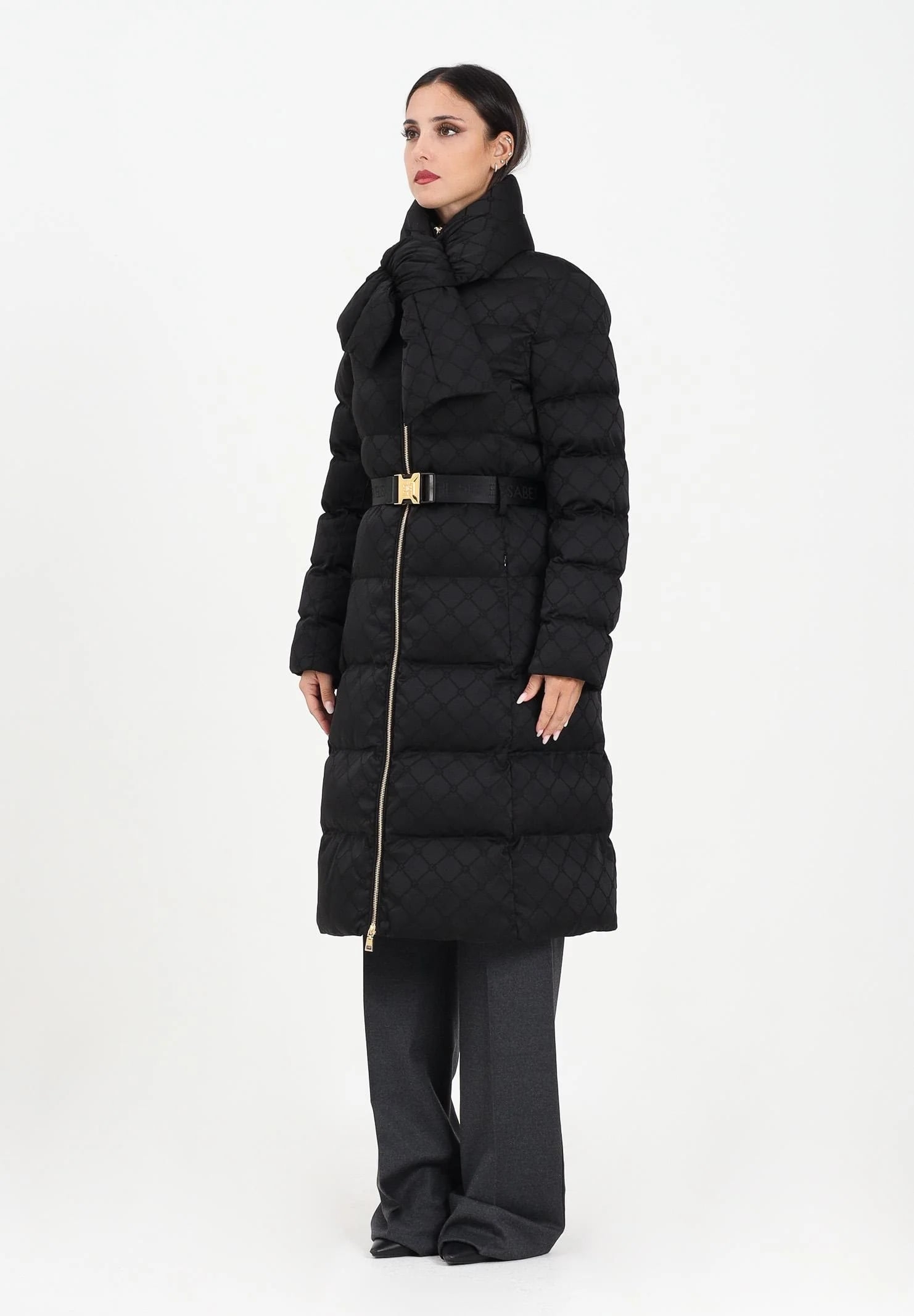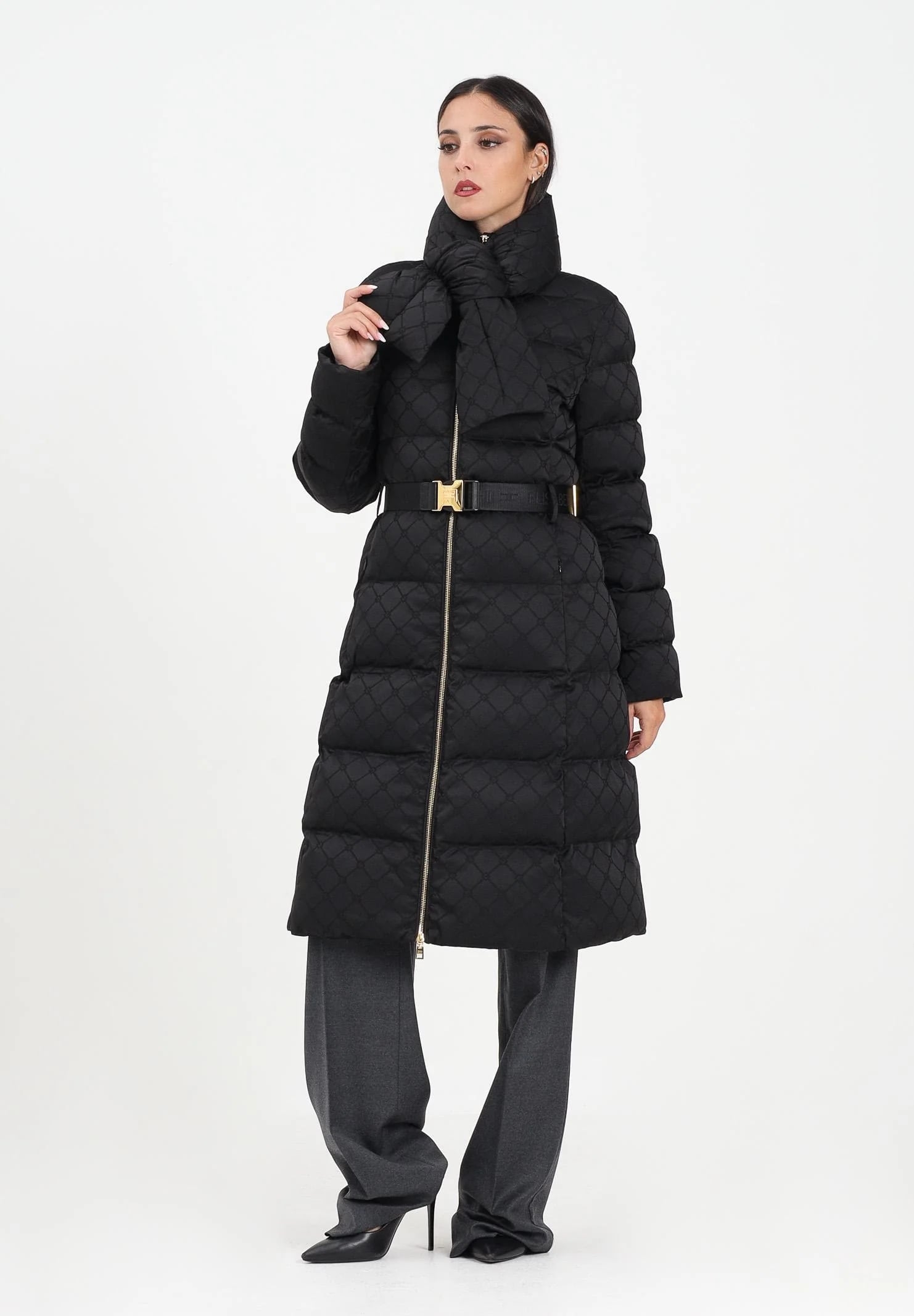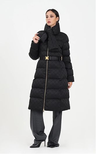 Пуховик длинный со съёмным шарфом и поясом в комплекте нового сезона Элизабетта Франчи осень-зима 2025/26