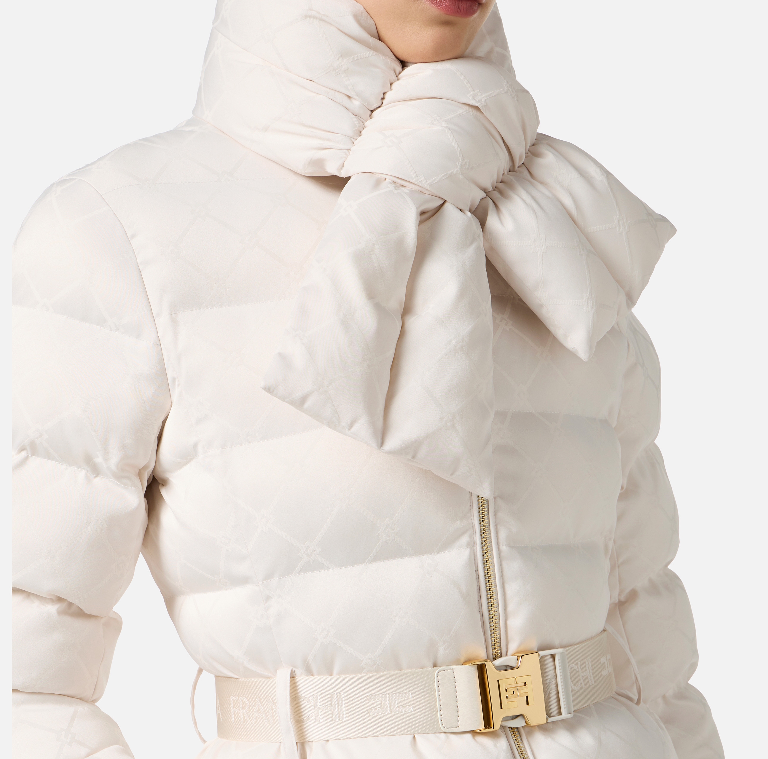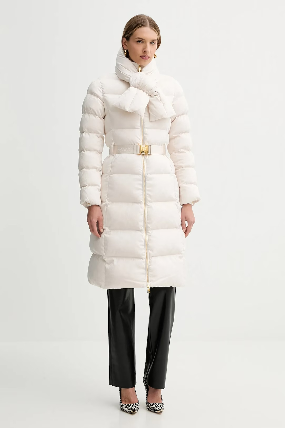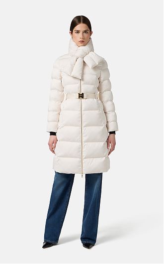Пуховик длинный со съёмным шарфом и поясом в комплекте нового сезона Элизабетта Франчи осень-зима 2025/26