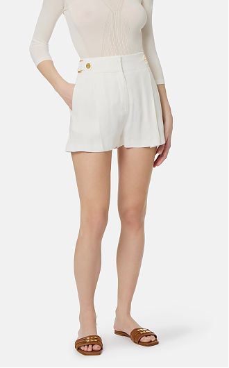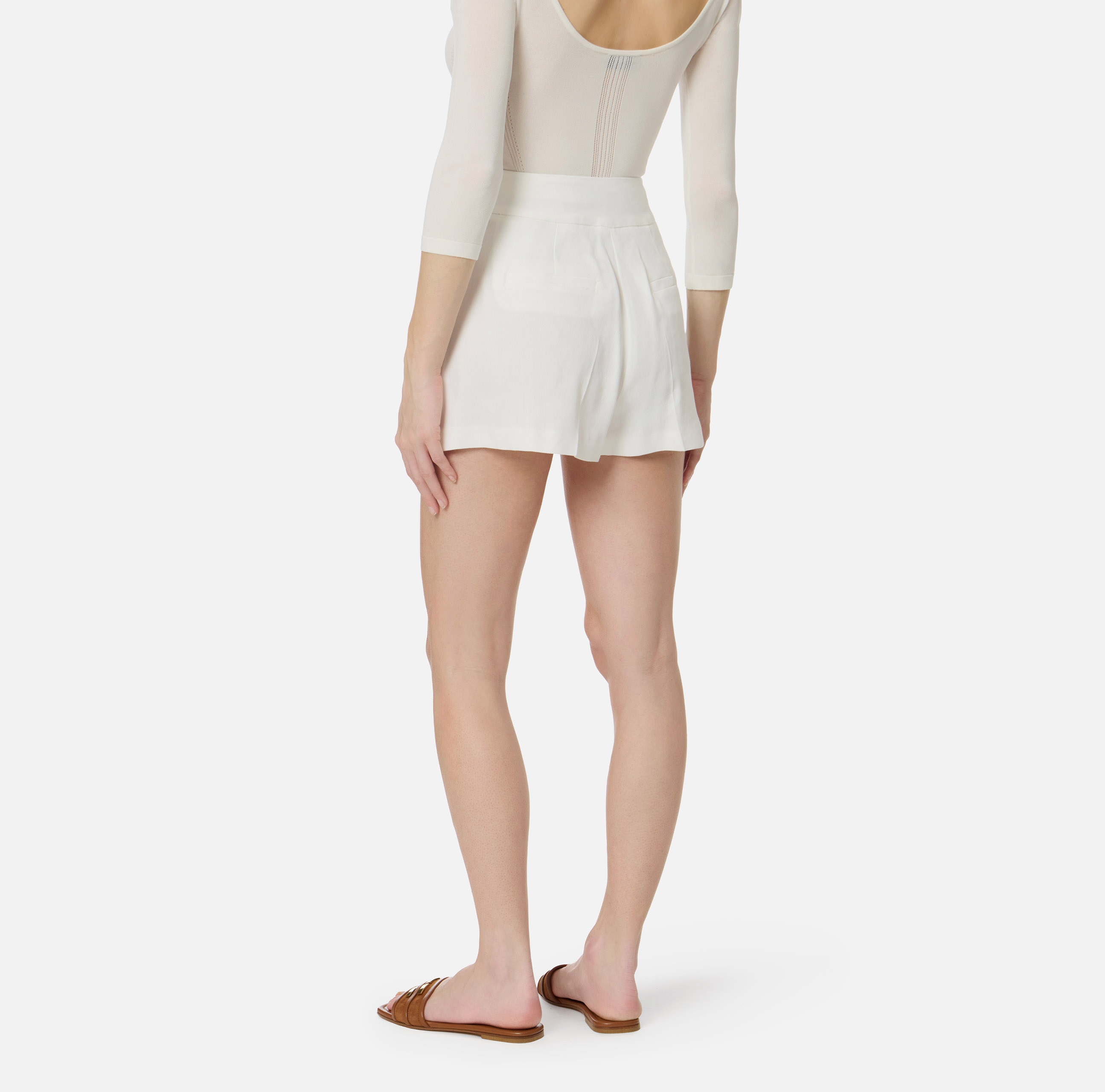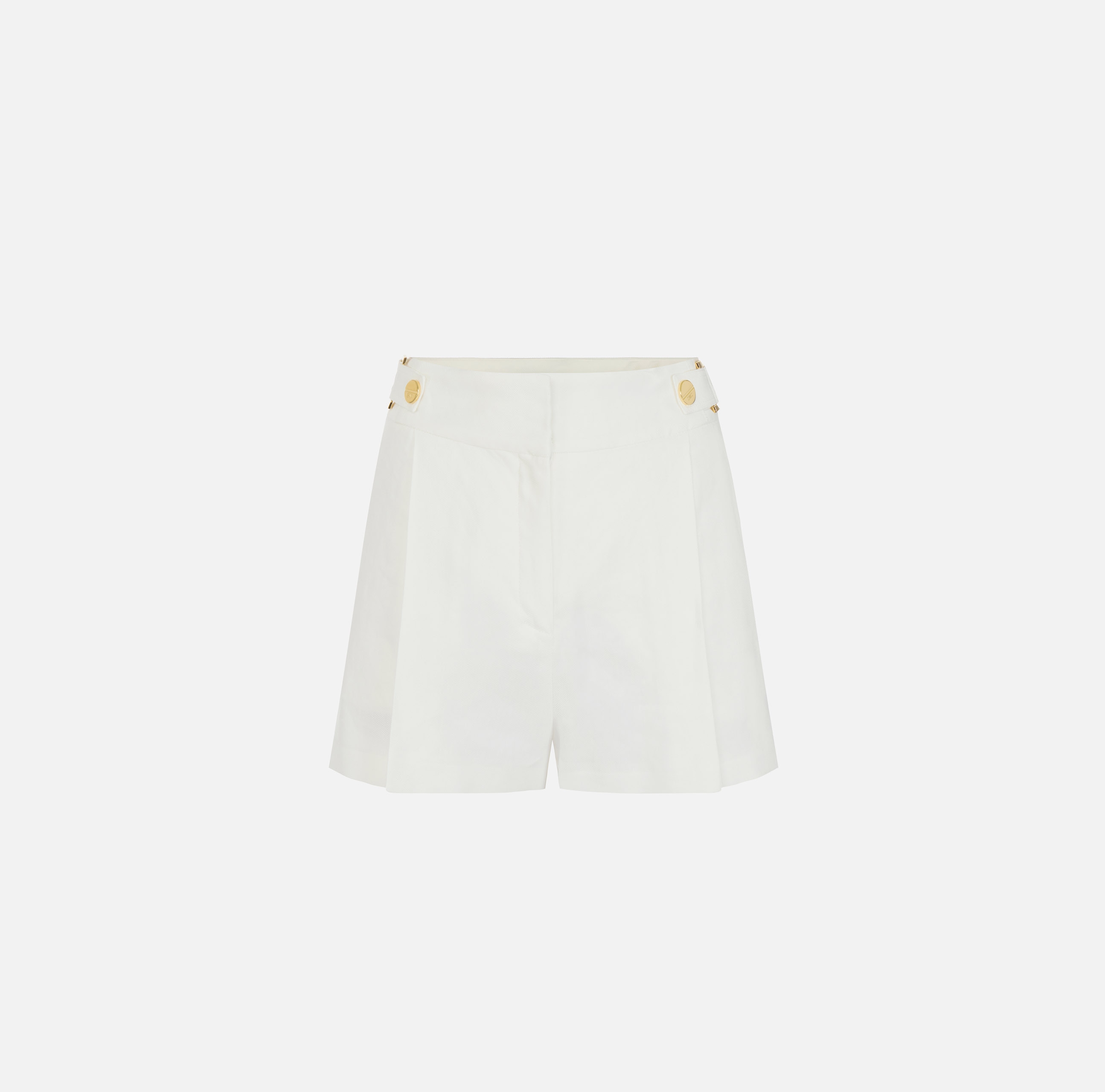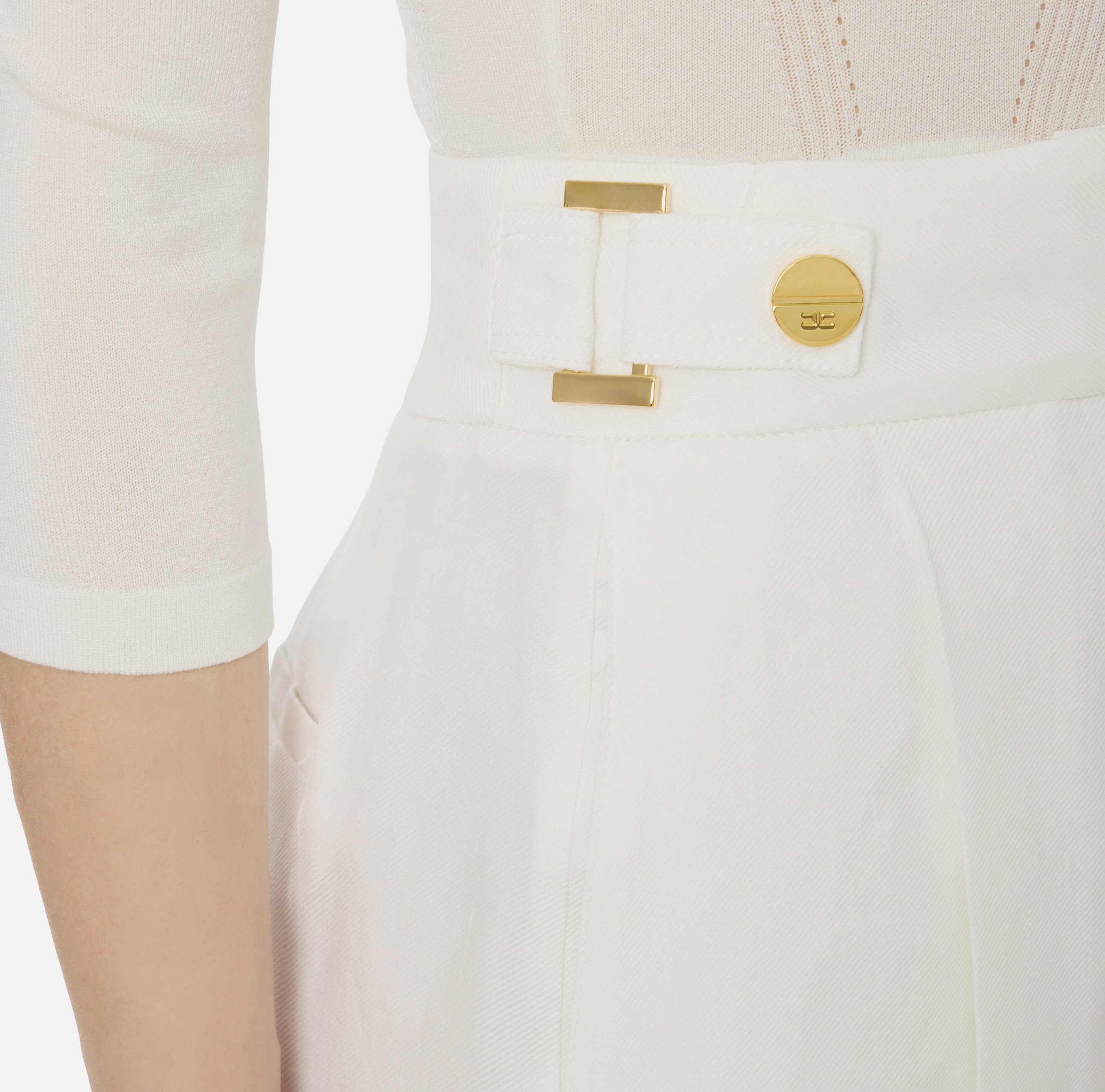 Шорты из льна. Притачной пояс дополнен ремешками с кольцами и пуговицами из золотистого металла, которые привносят в изделие блестящий штрих, нового сезона Элизабетта Франчи весна-лето 2026