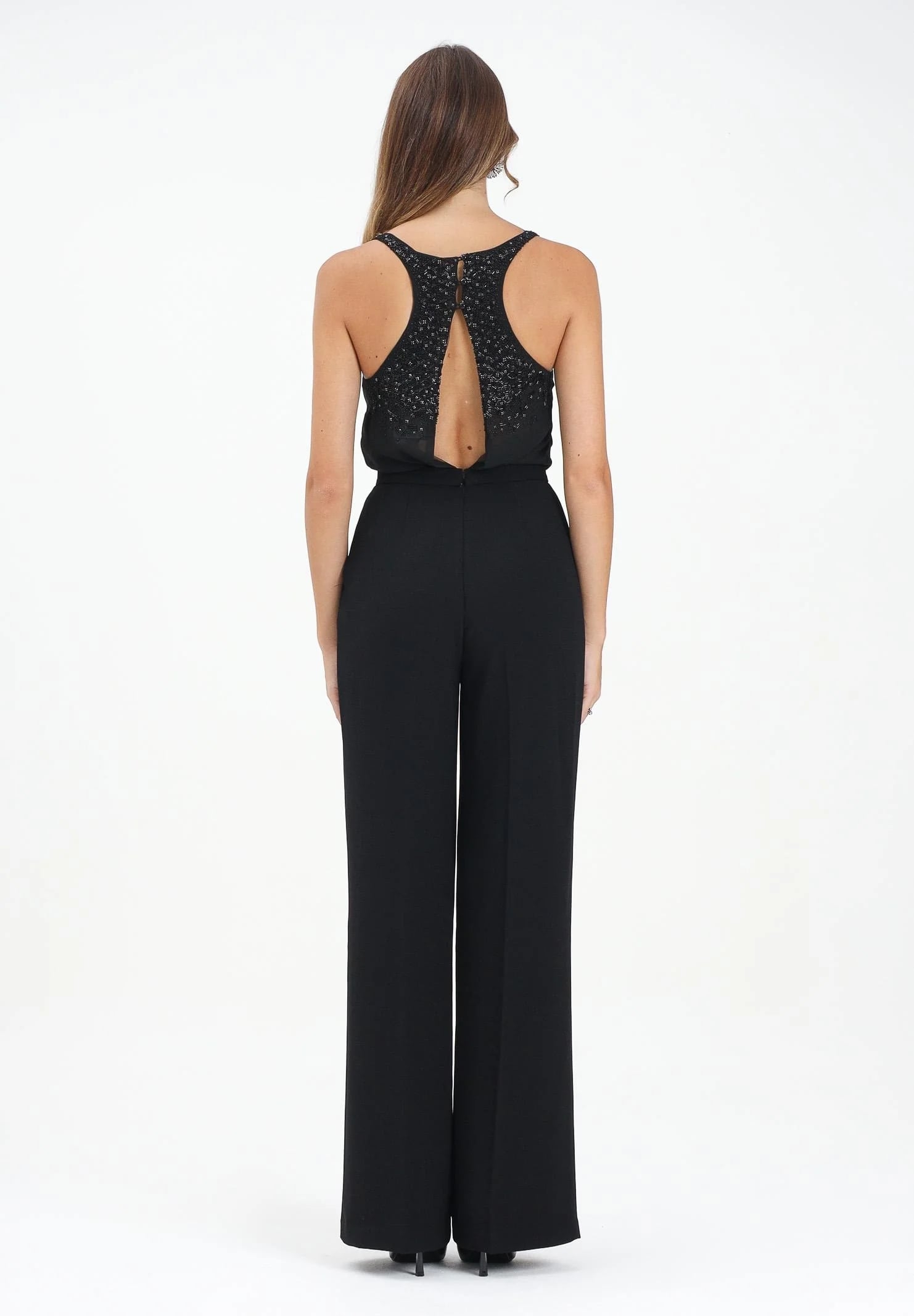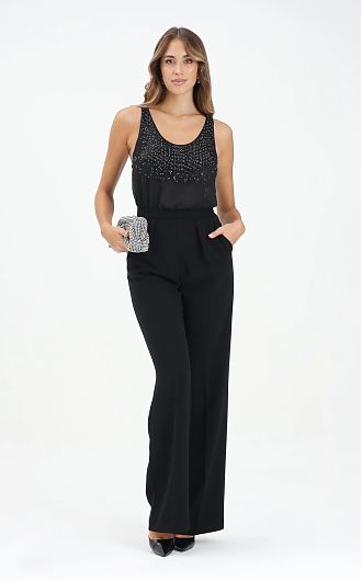 Оригинальный комбинезон, топ из жоржета расшит кристаллами с мотивом под змеиную кожу нового сезона Элизабетта Франчи осень-зима 2025/26