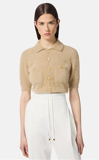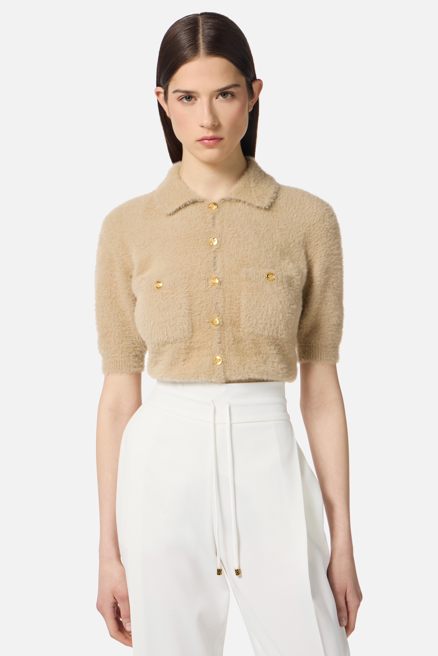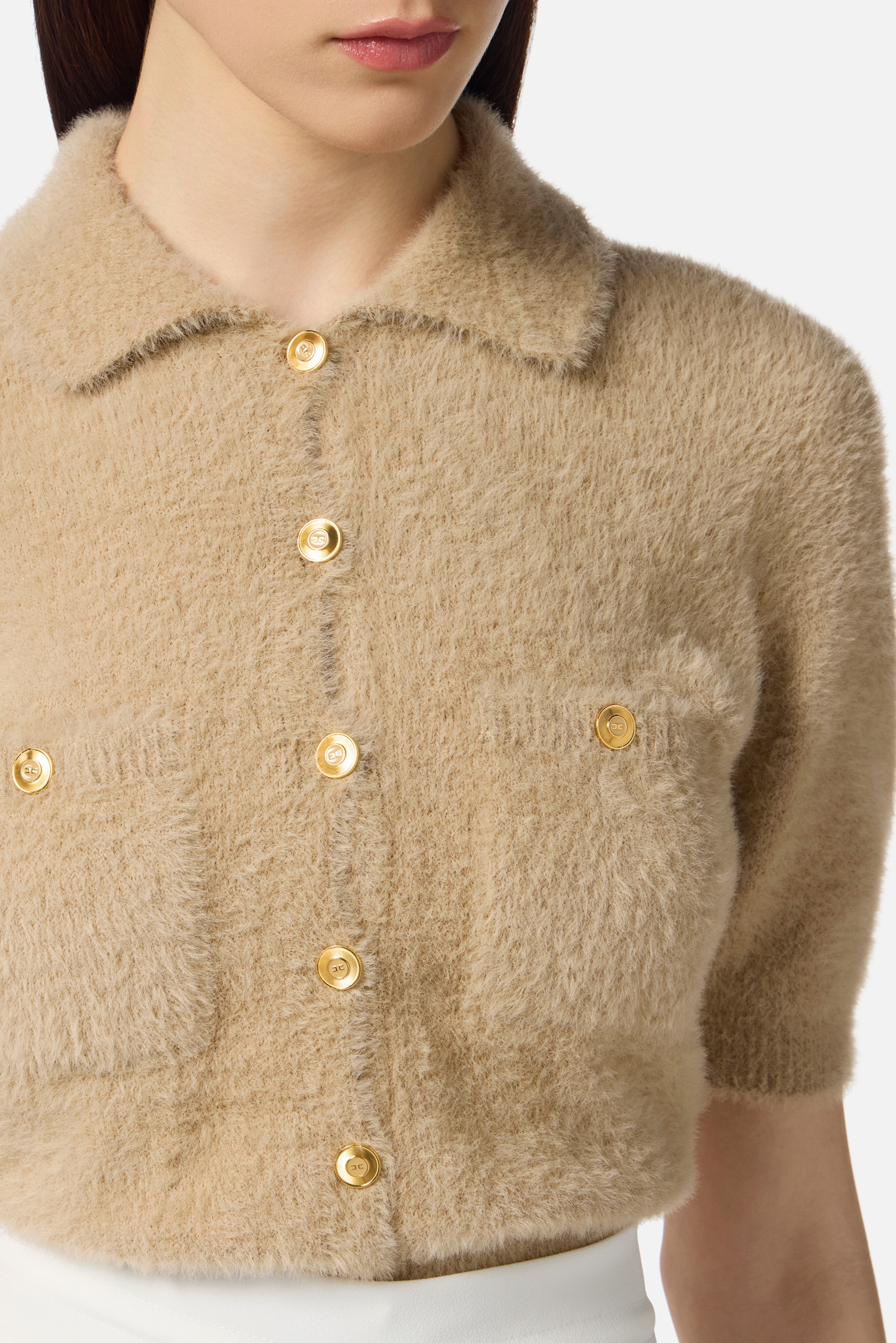 Кардиган укороченный плющевый с карманами и золотыми пуговицами нового сезона Элизабетта Франчи осень-зима 2025/26