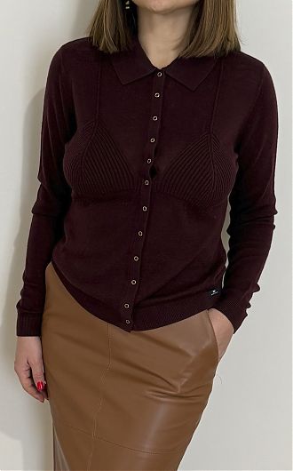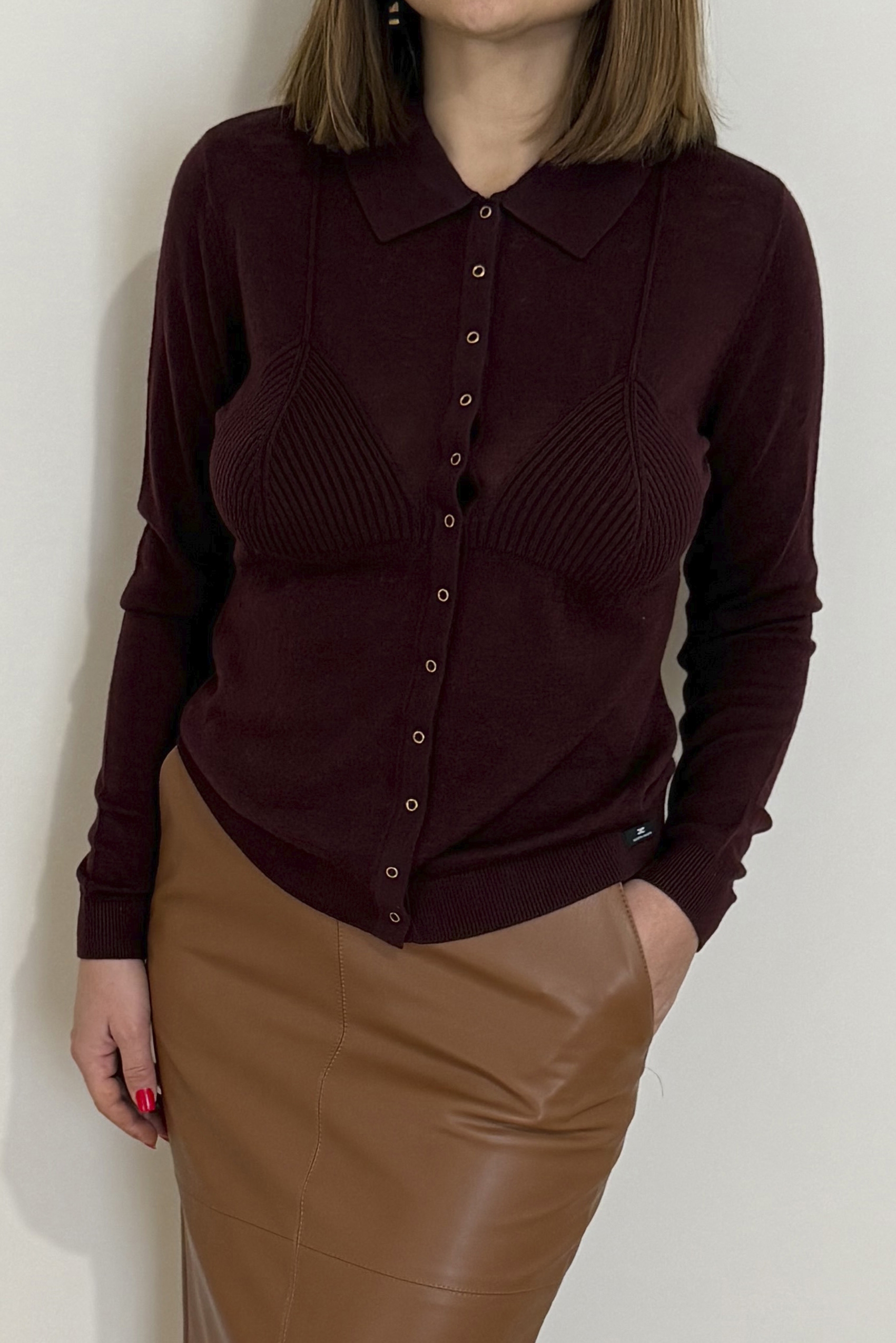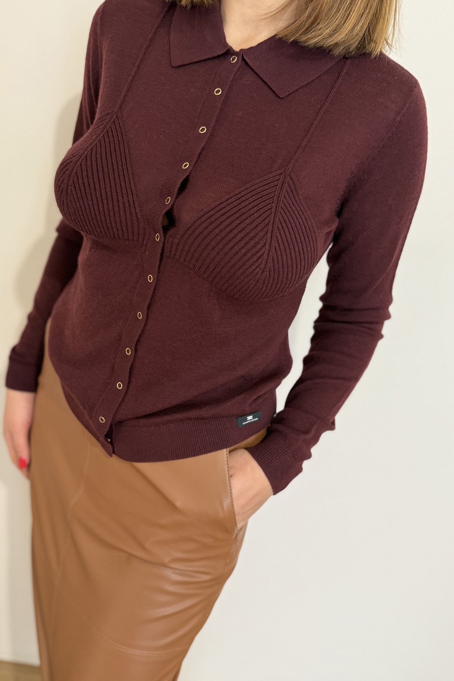 Кофта-кардиган с силуэтом бюстгальтера на груди создаёт изысканный текстурный контраст, нового сезона Элизабетта Франчи осень-зима 2025/26