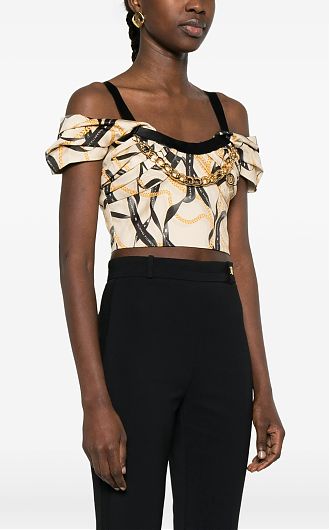Топ с принтоми и золотой подвеской нового сезона Элизабетта Франчи весна-лето 2026