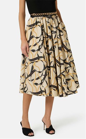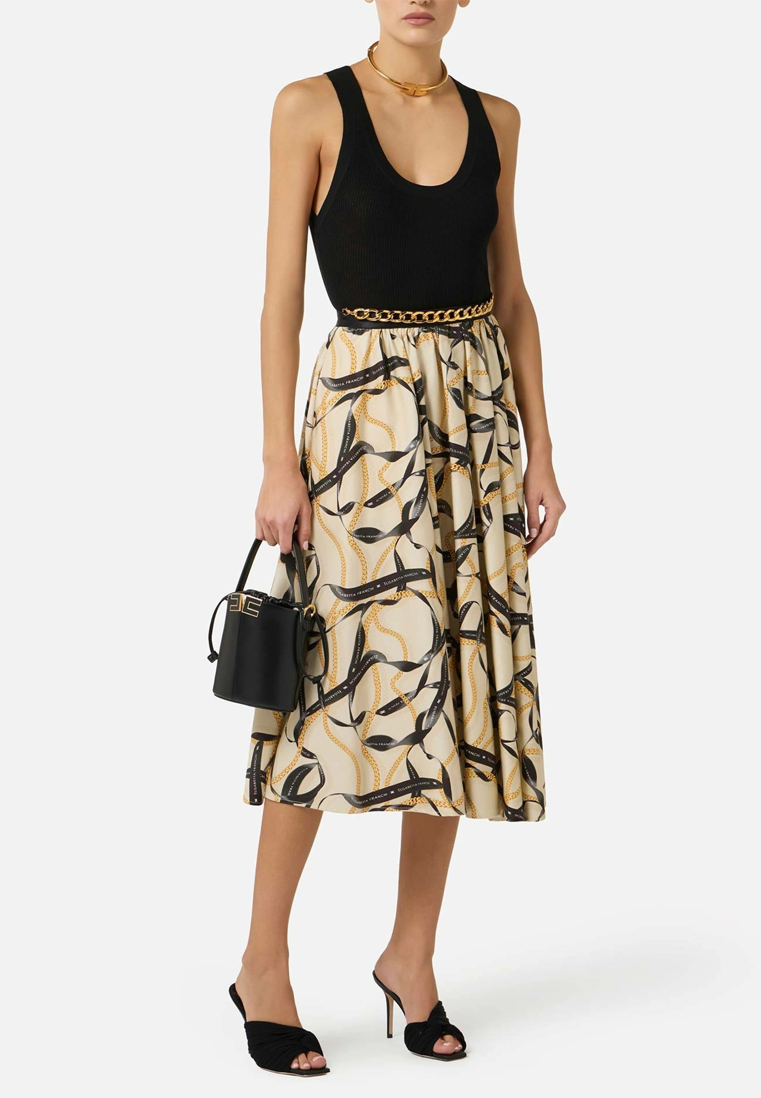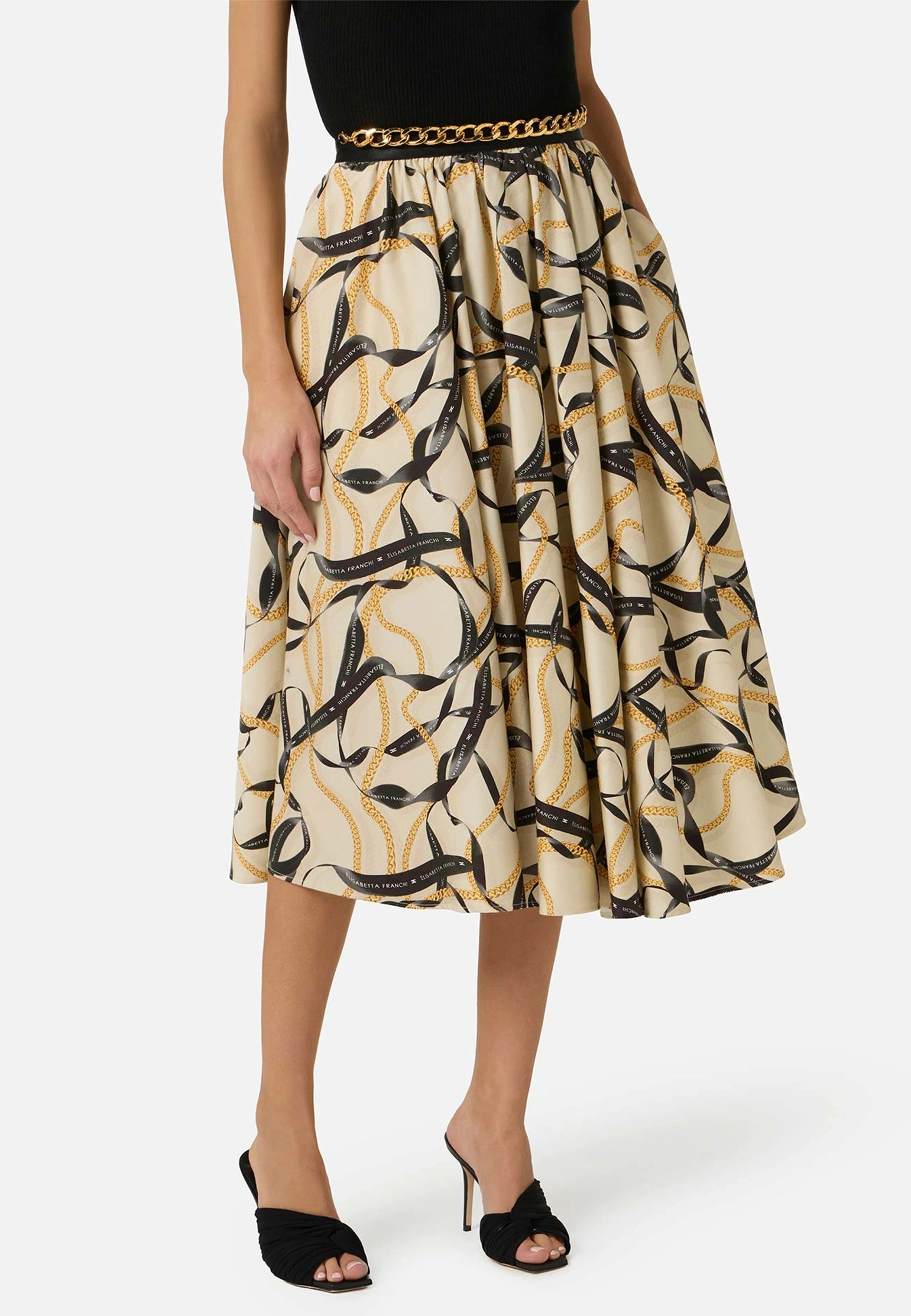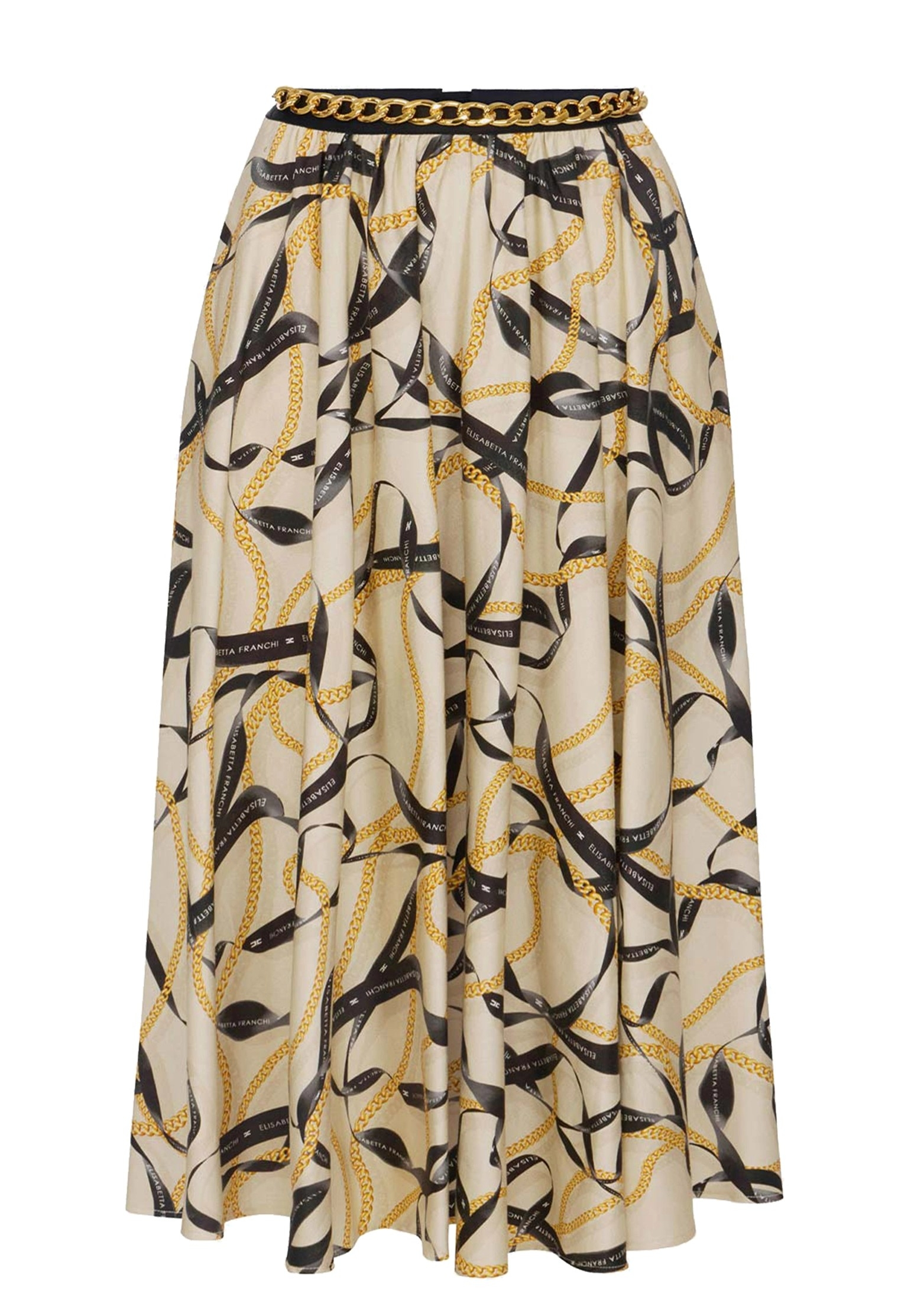 Юбка с принтоми и золотой подвеской нового сезона Элизабетта Франчи весна-лето 2026