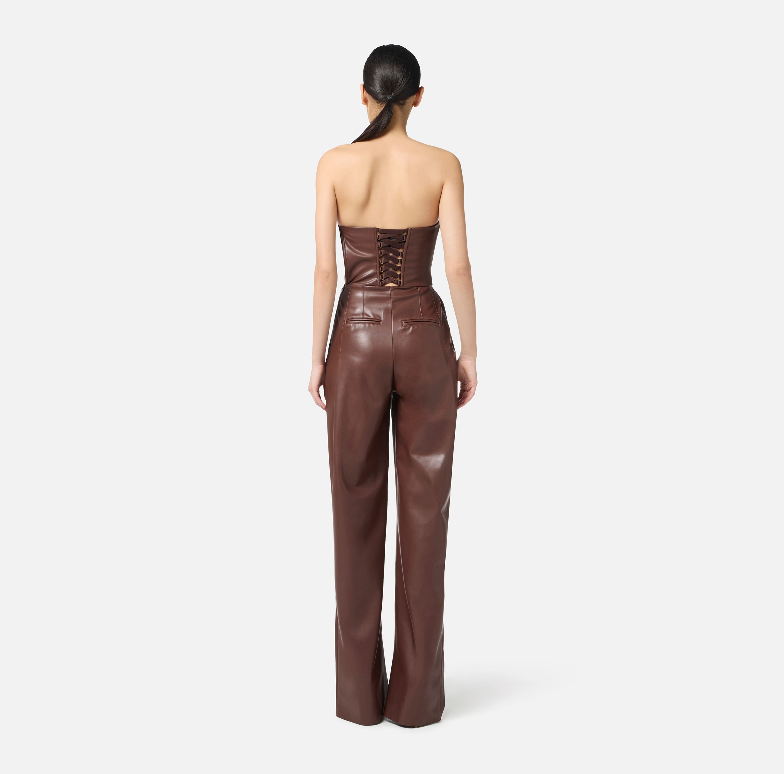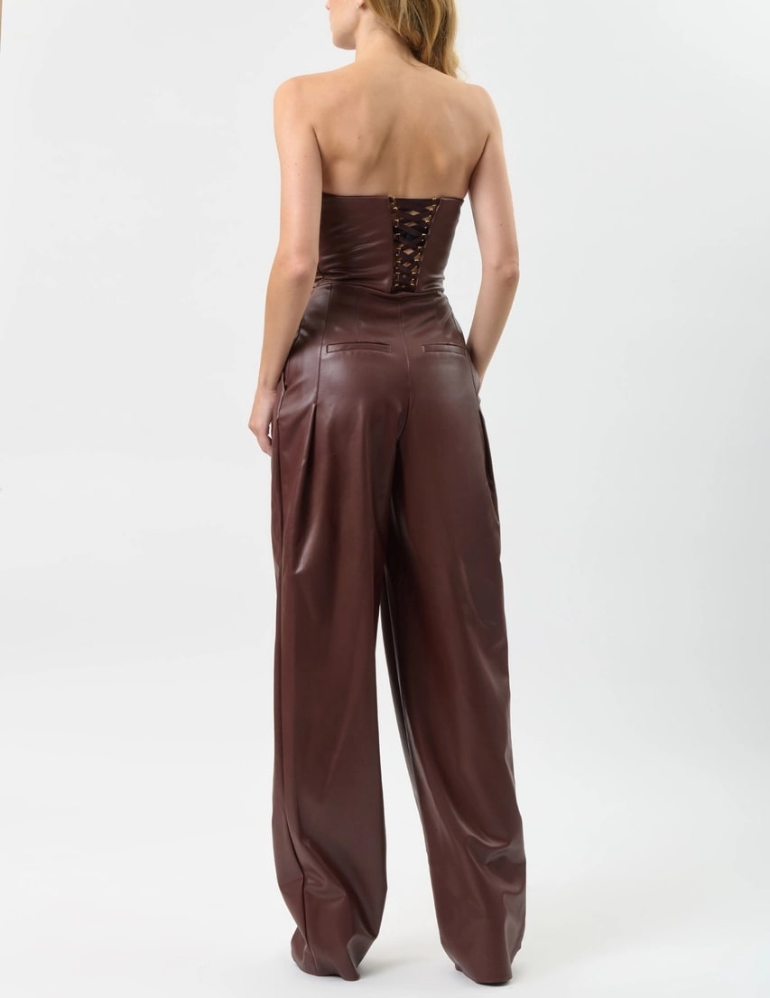 Оригинальный комбинезон из эко-кожи с открытыми плечами нового сезона Элизабетта Франчи осень-зима 2025/26