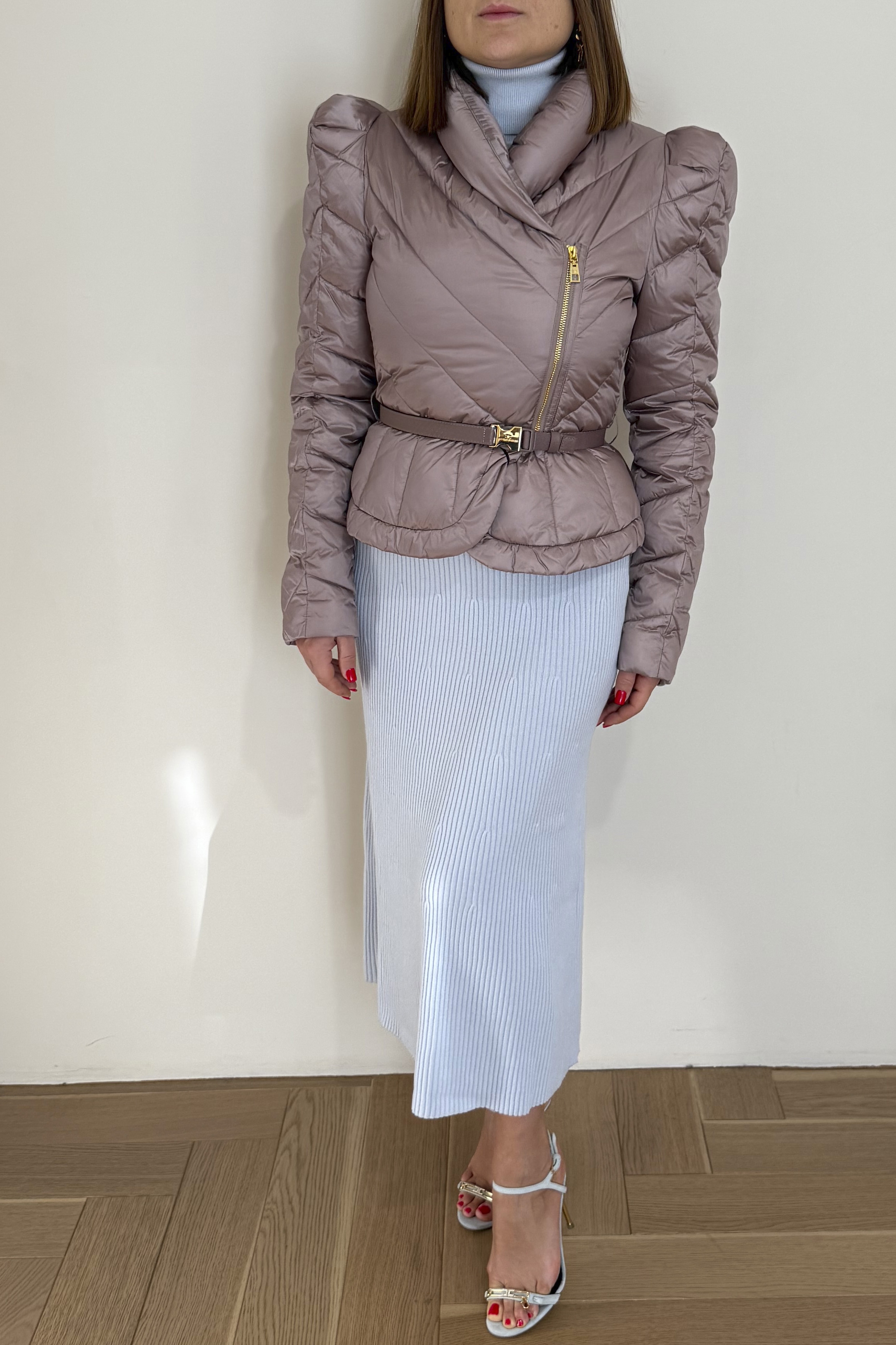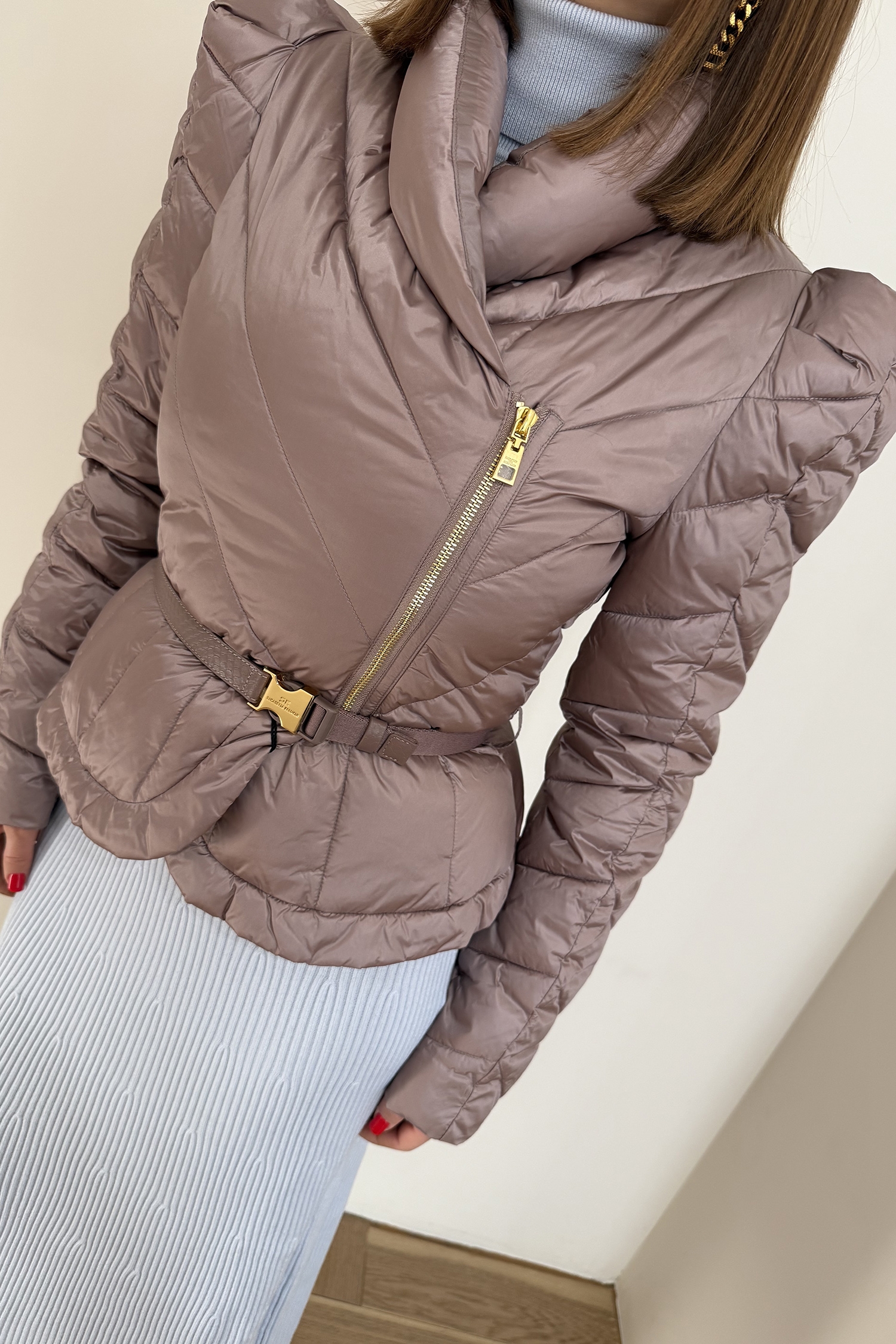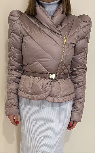Пуховик хит с плечиками и ремнём в комплекте нового сезона Элизабетта Франчи осень-зима 2025/26