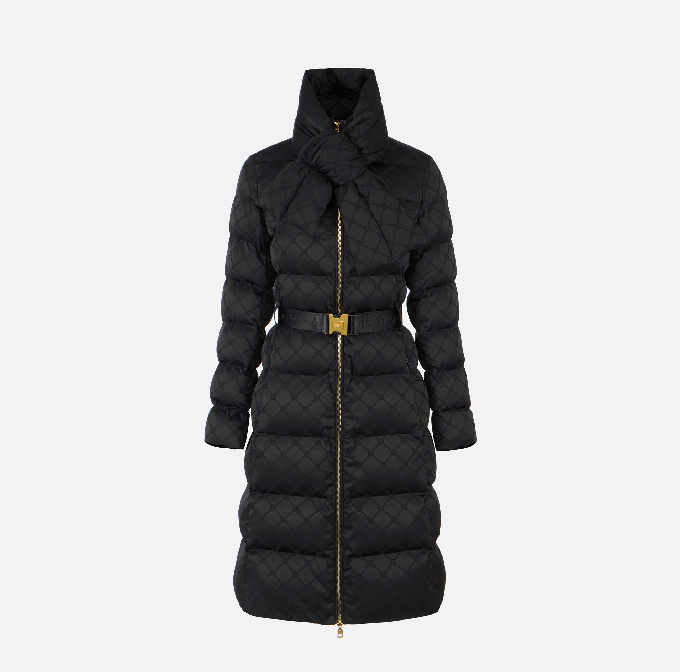 Пуховик длинный со съёмным шарфом и поясом в комплекте нового сезона Элизабетта Франчи осень-зима 2025/26