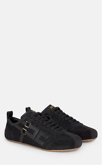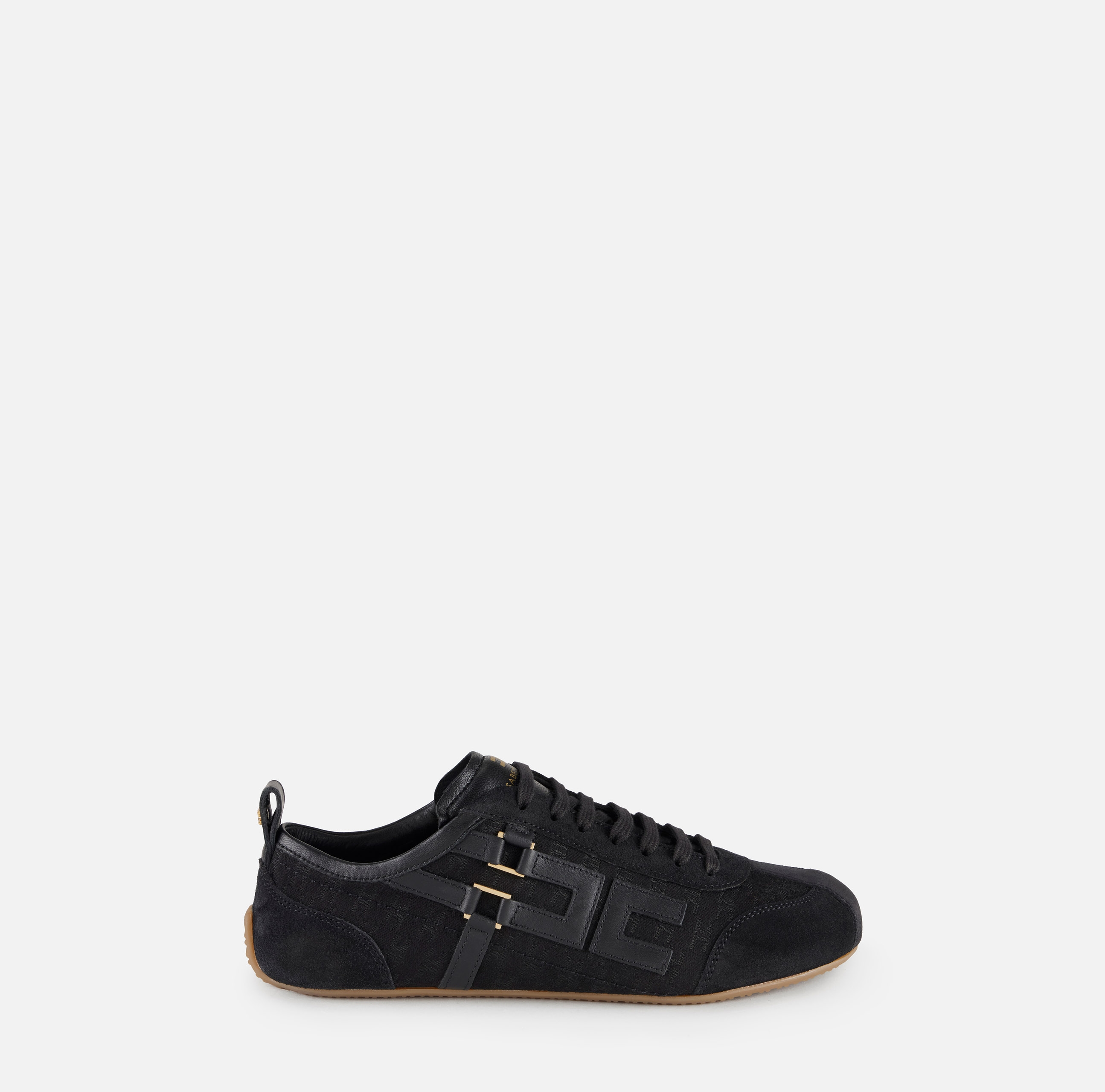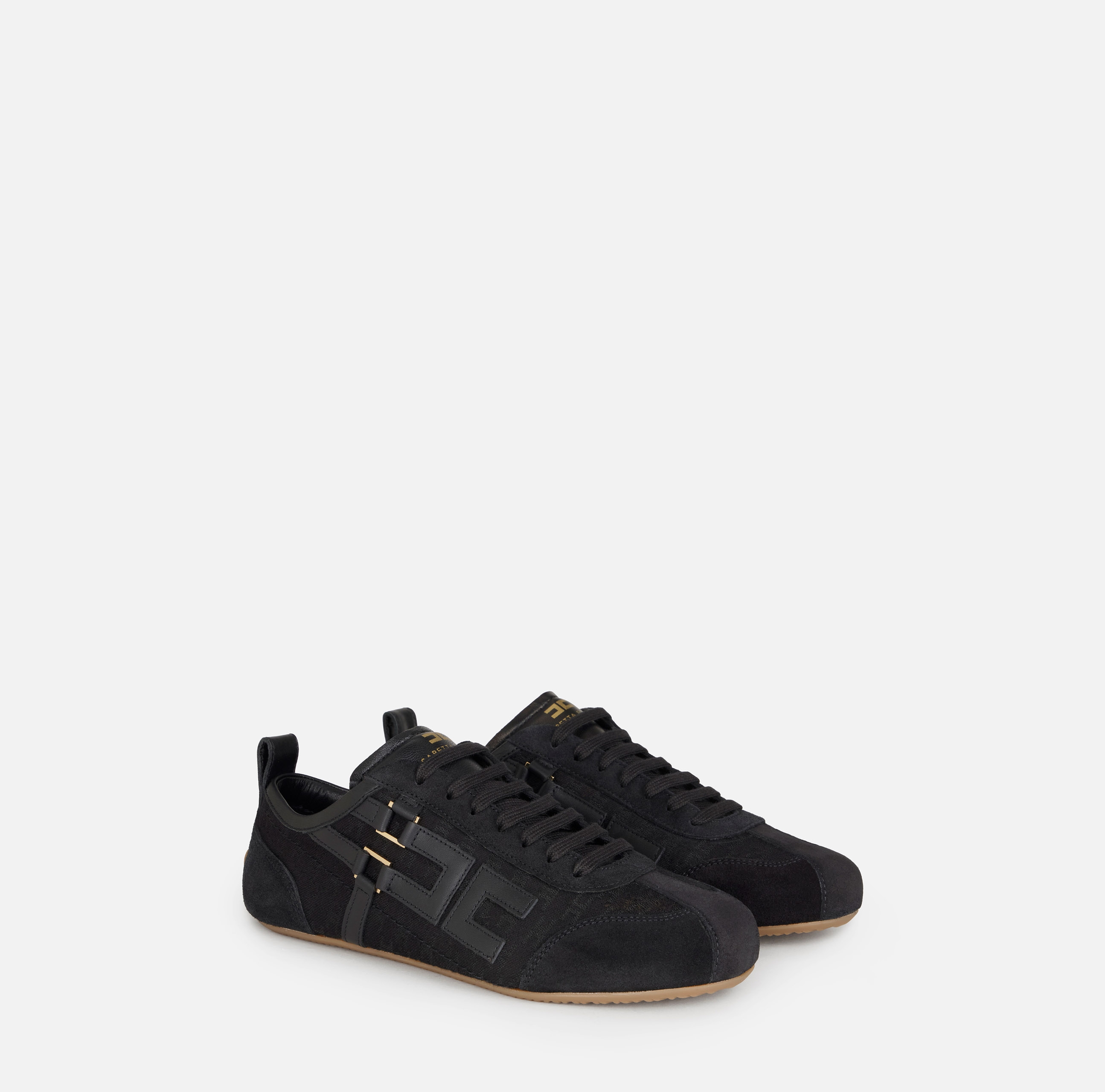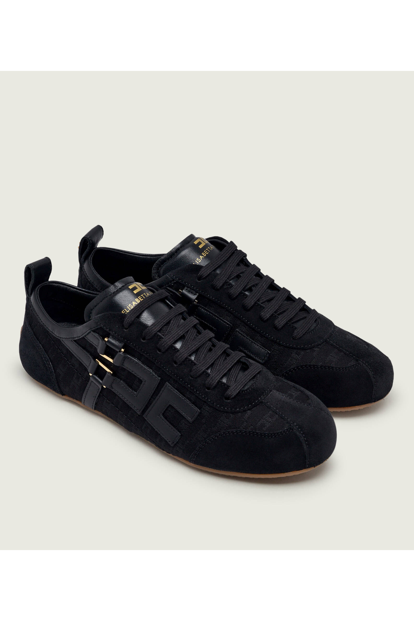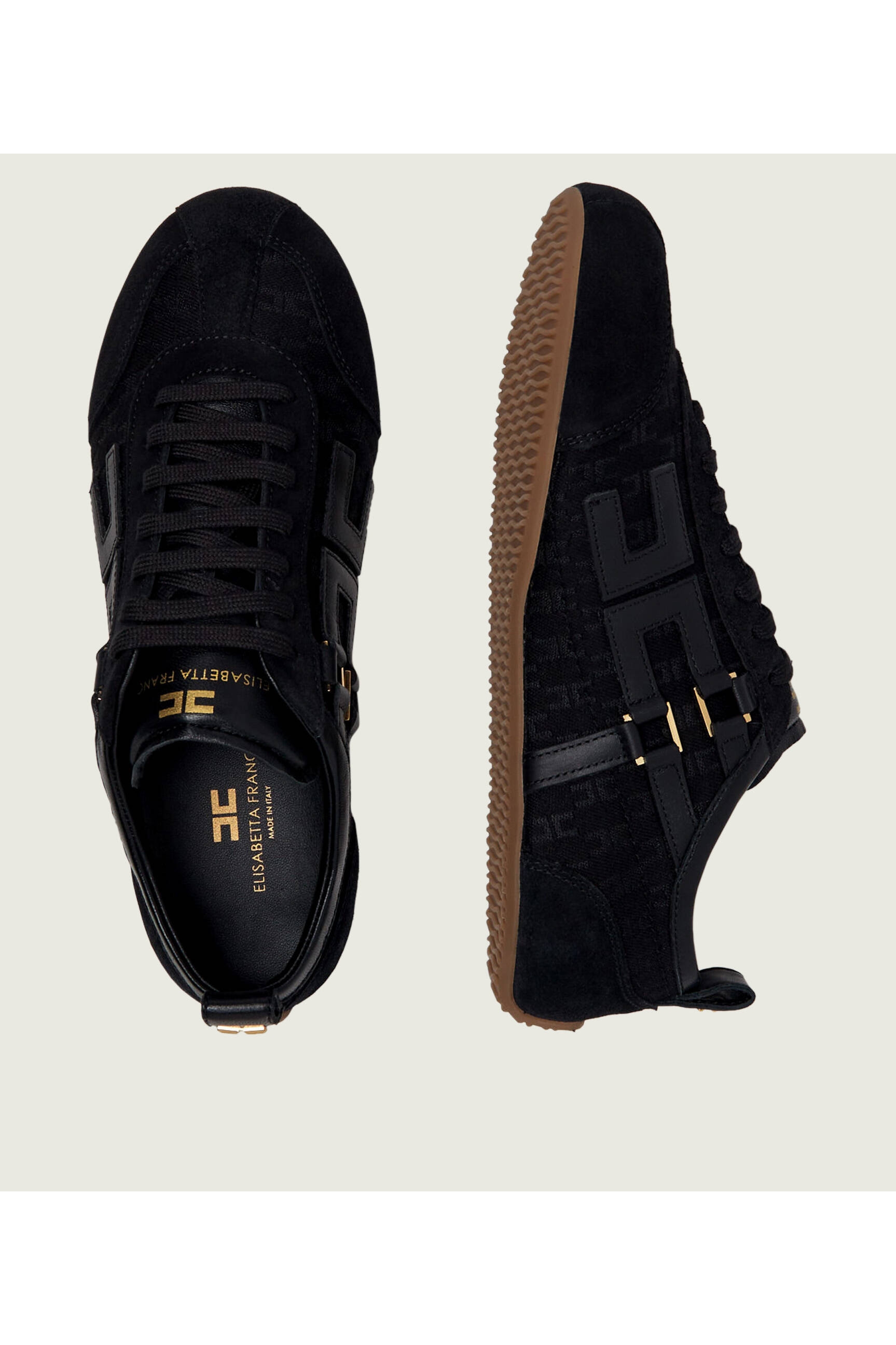 Спортивные кеды из кожи наппа с деталями из замши и ткани. Верх украшен мотивом в виде монограммы в жаккардовой технике, вышитым логотипом и кольцами из золотистого металла, нового сезона Элизабетта Франчи весна-лето 2025.
