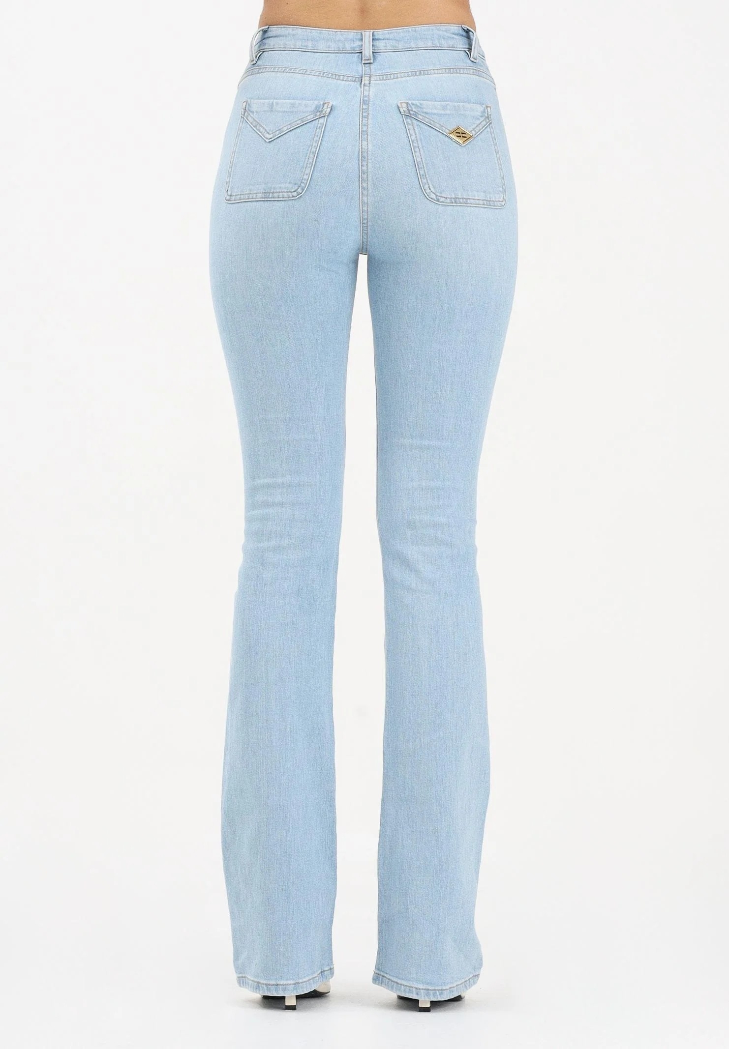 Джинсы с расклёшенным книзу силуэтом. Модель оформлена карманами с клапаном, украшенными пуговицами из золотистого металла спереди и пластинкой с логотипом сзади, нового сезона Элизабетта Франчи весна-лето 2026