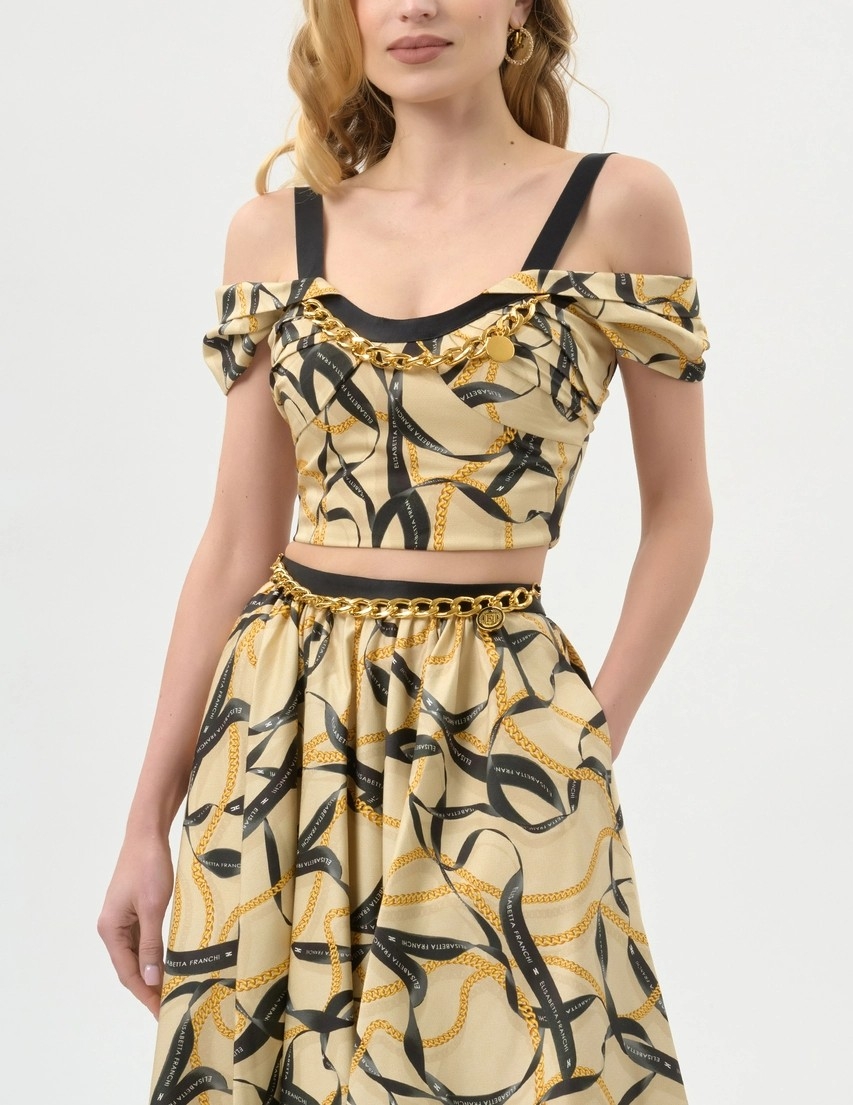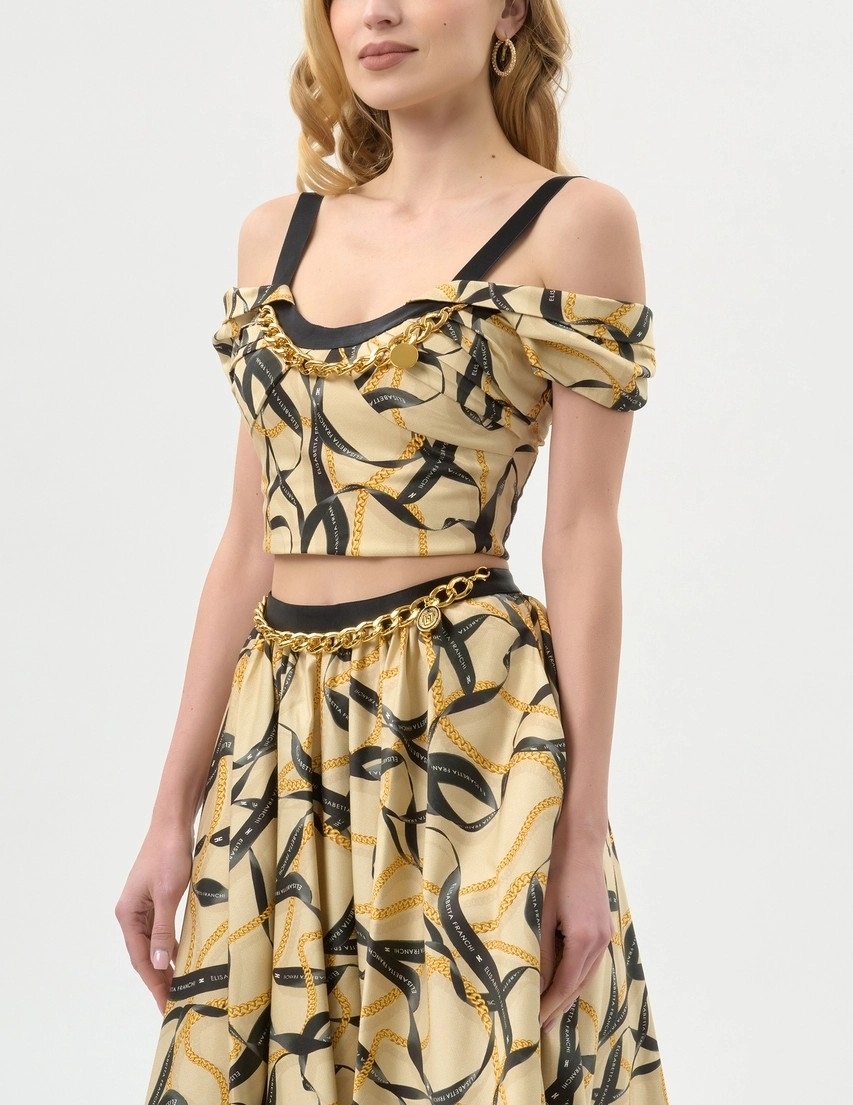 Топ с принтоми и золотой подвеской нового сезона Элизабетта Франчи весна-лето 2026