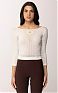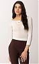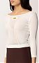 Топ из трикотажа с рукавами ¾ и широкой круглой горловиной. Комбинация из ажурных узоров, образующих динамичный геометрический мотив, сочетается с блестящей пластинкой с логотипом  спереди. Сзади предусмотрена открытая спинка нового сезона Элизабетта Франчи весна-лето 2026