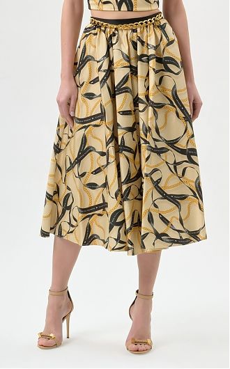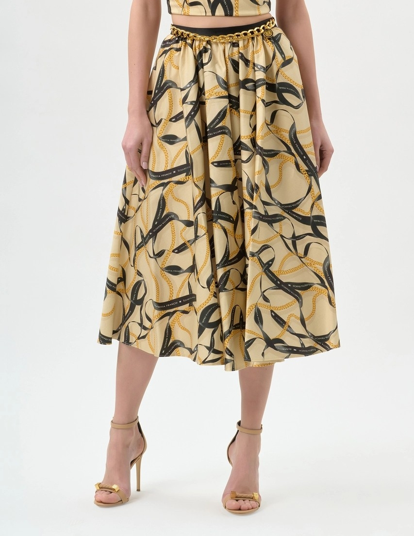 Юбка с принтоми и золотой подвеской нового сезона Элизабетта Франчи весна-лето 2026