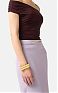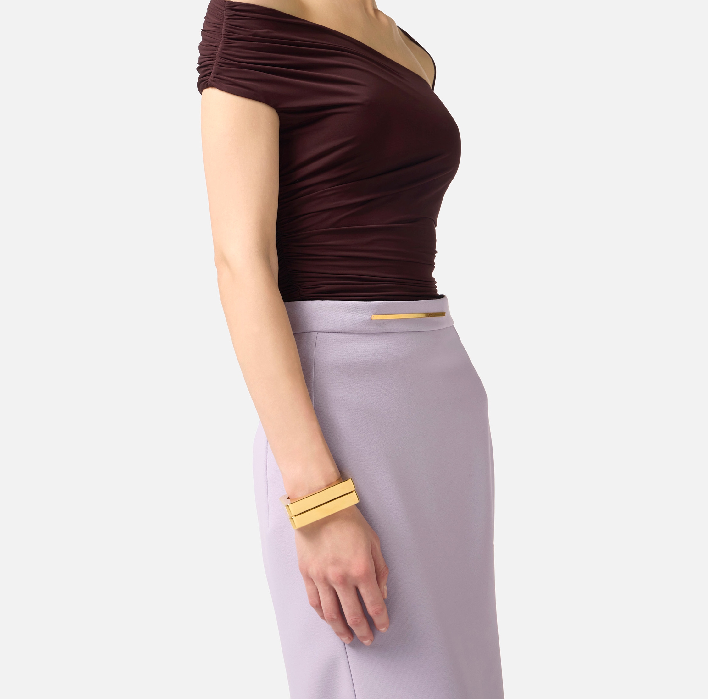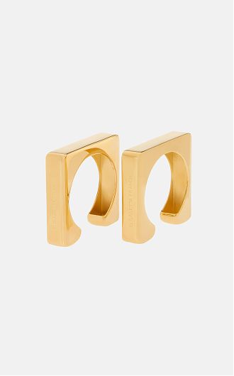 Пара жёстких квадратных браслетов-манжет из золотистого металла, нового сезона Элизабетта Франчи весна-лето 2026.